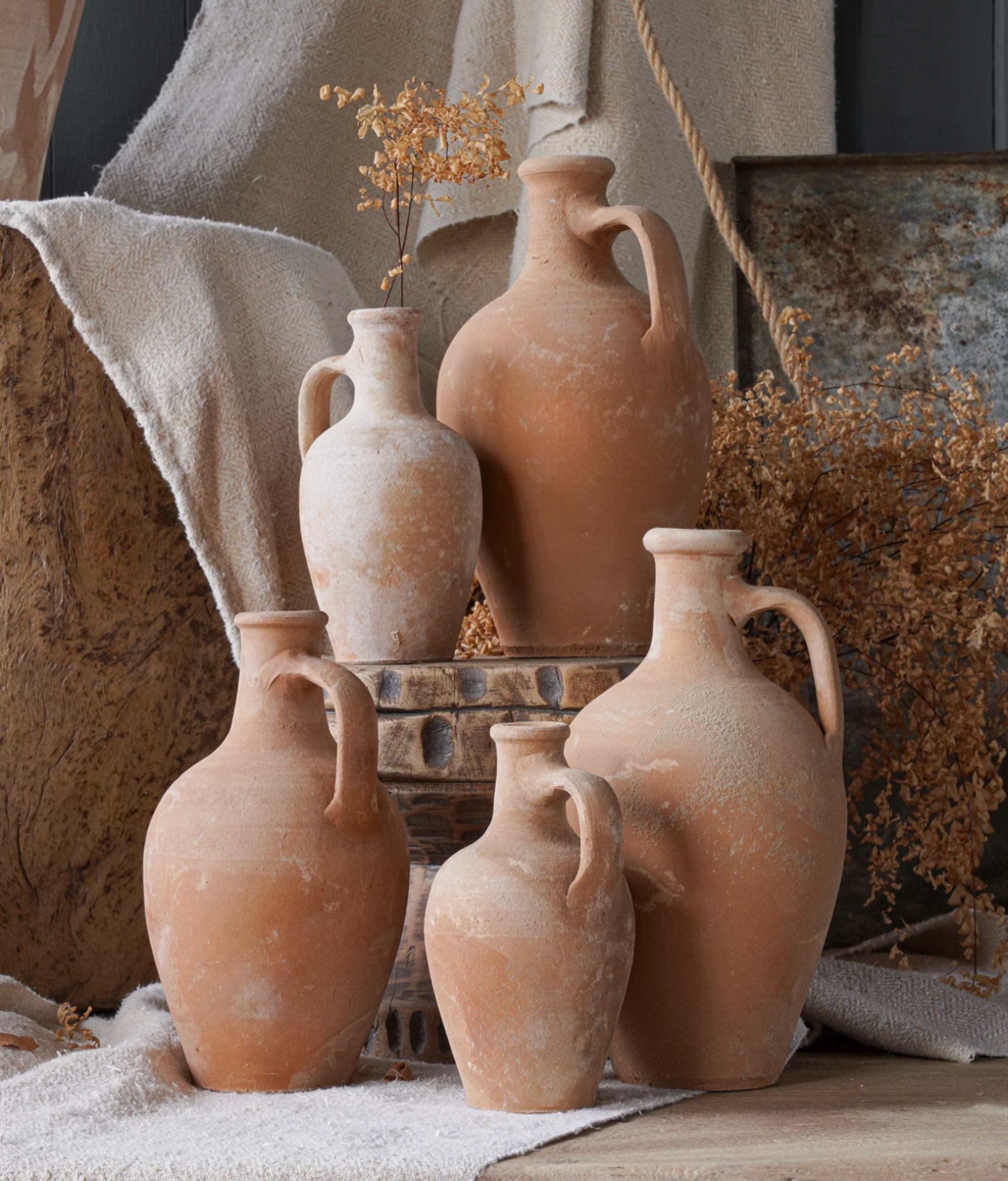 The oversized Avanos Wine Pot has a traditional design that is slender at top and bottom with a rounded, bulbous center. Hand-crafted by artisans in Turkey, the clay Avanos Water Pot has a wide mouth that makes it a perfect accent for holding tall faux grasses or bamboo stems. The Avanos Wine Pot is naturally finished with a glaze to enhance its natural clay hue. Use decoratively.