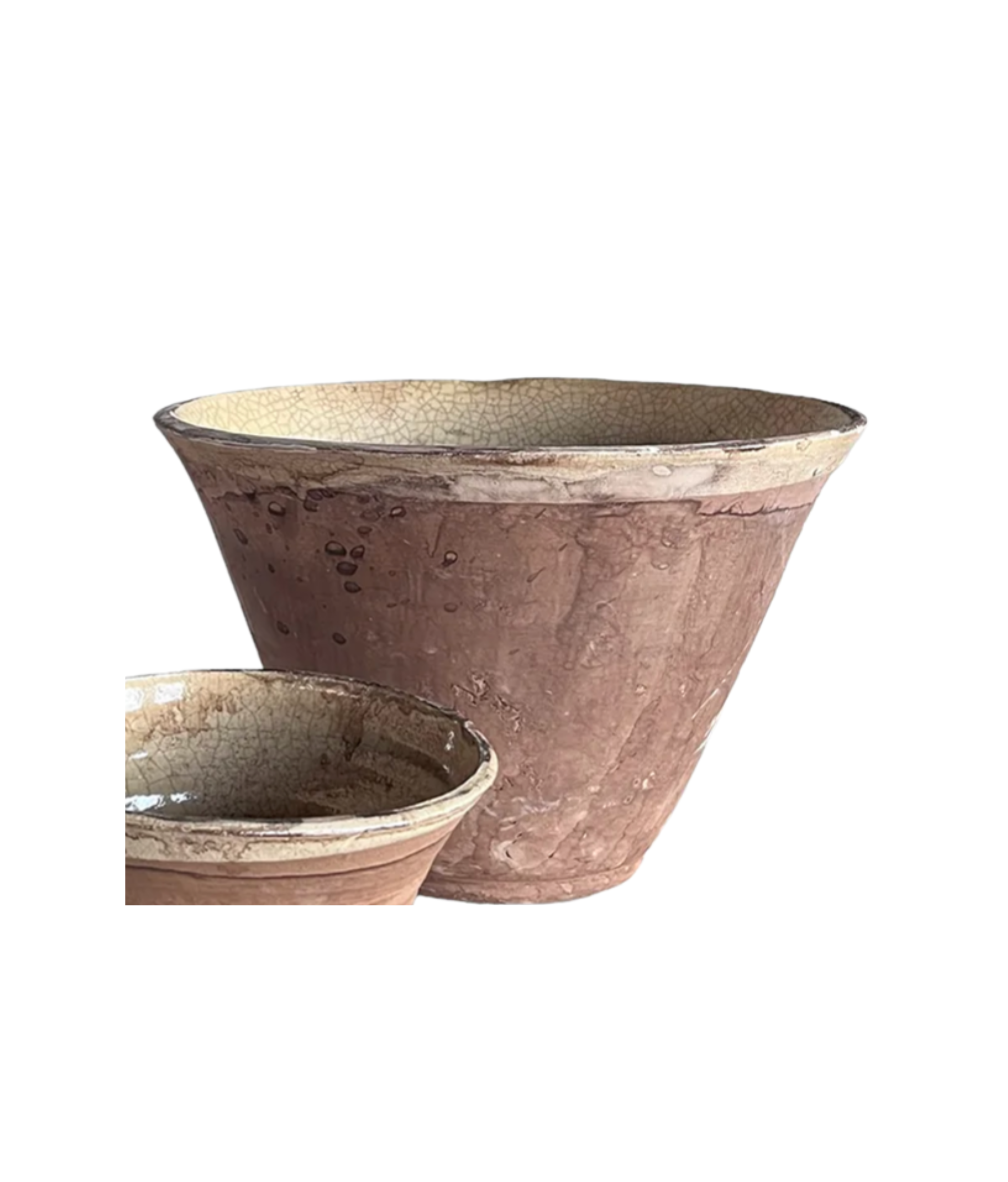 Since the time of the Ancient Greeks, handmade pottery has been a hallmark in southern Europe and beyond. Travel through the Romanian regions, and there is no doubt that you will find a bevy of clay dish-ware. Retaining the rustic, handmade appeal of daily wares, the Cottage Crafted Bowl has a deep, conical shaped basin. the exterior remains a natural clay hue while the interior and upper lip of the bowl is glazed. Available in Cream.