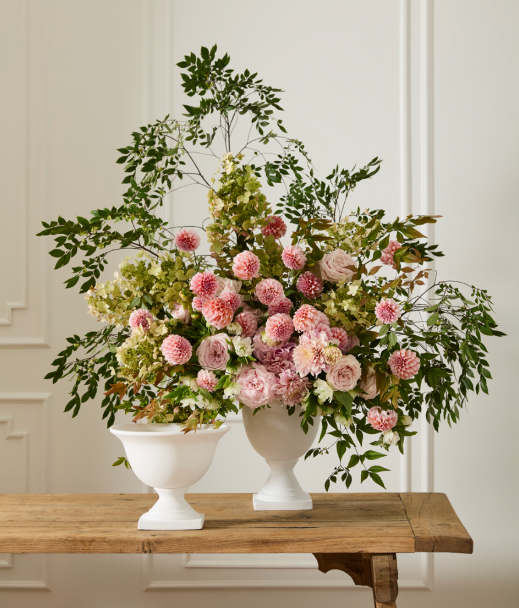 Elevate dried or fresh florals easily with the versatile ceramic Castleberry Urn Collection, designed to complement colorful or neutral arrangements. An ample fluted opening accommodates large, full florals. Layer the urn sizes together for dimensional everyday or event tablescapes.