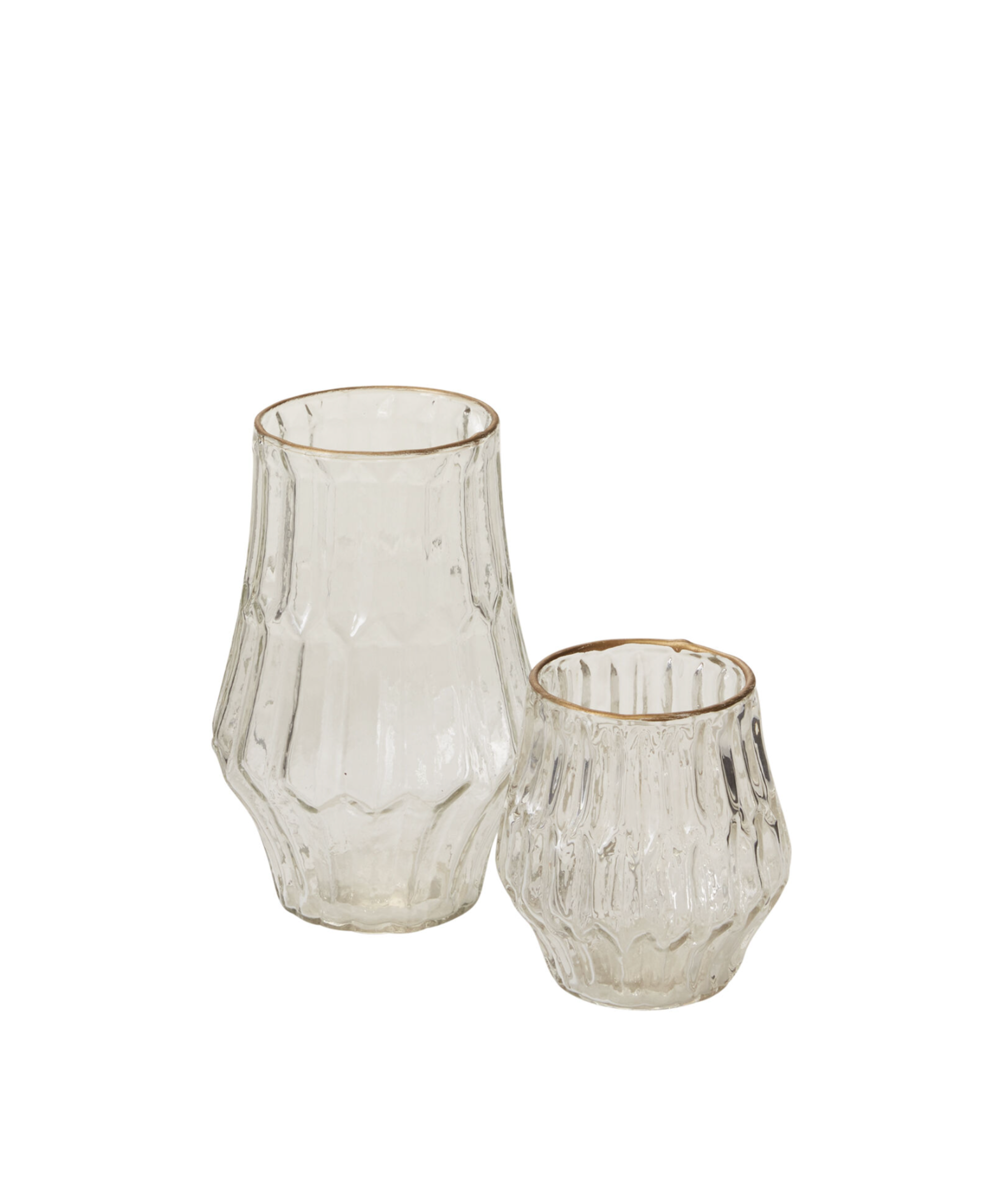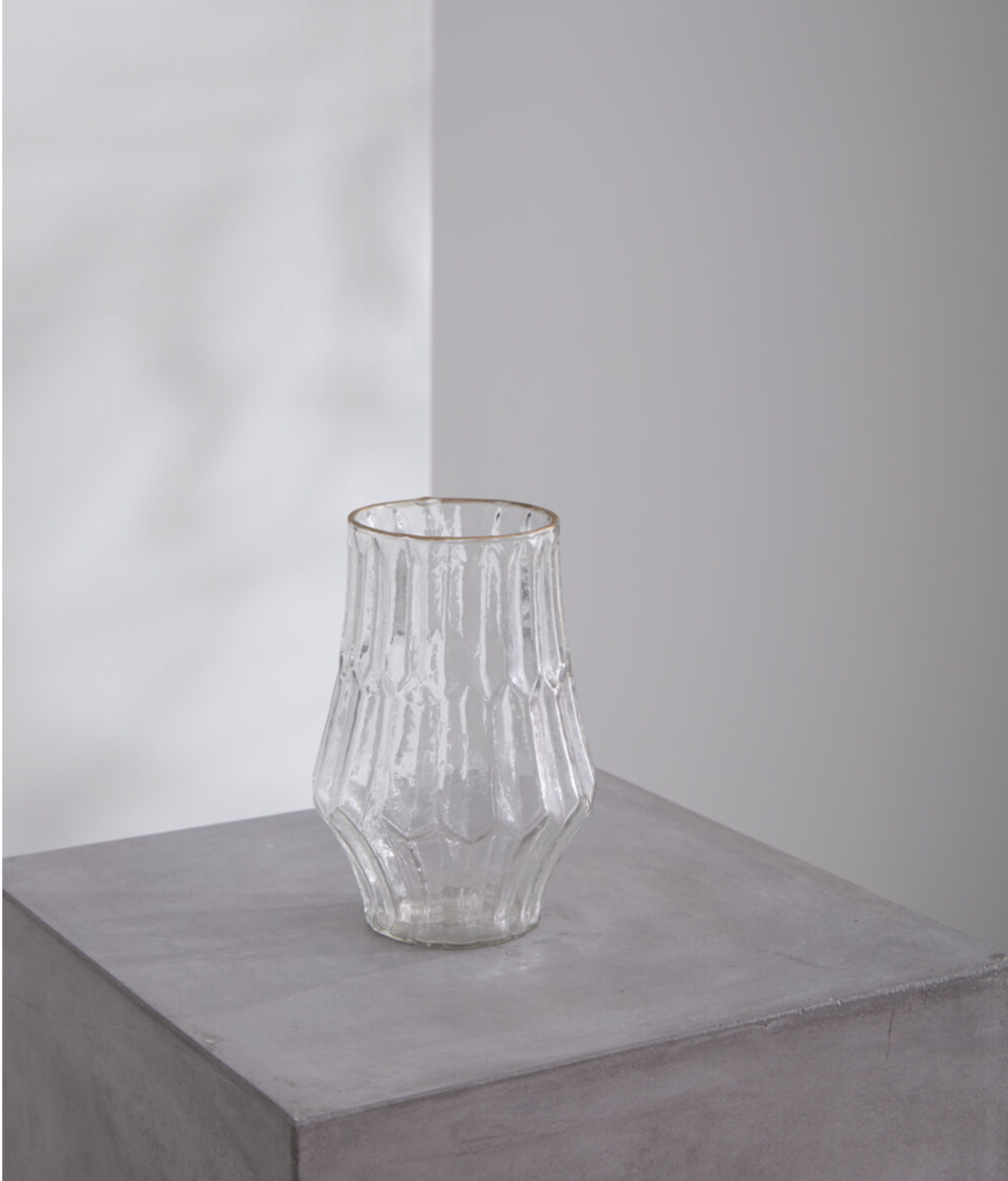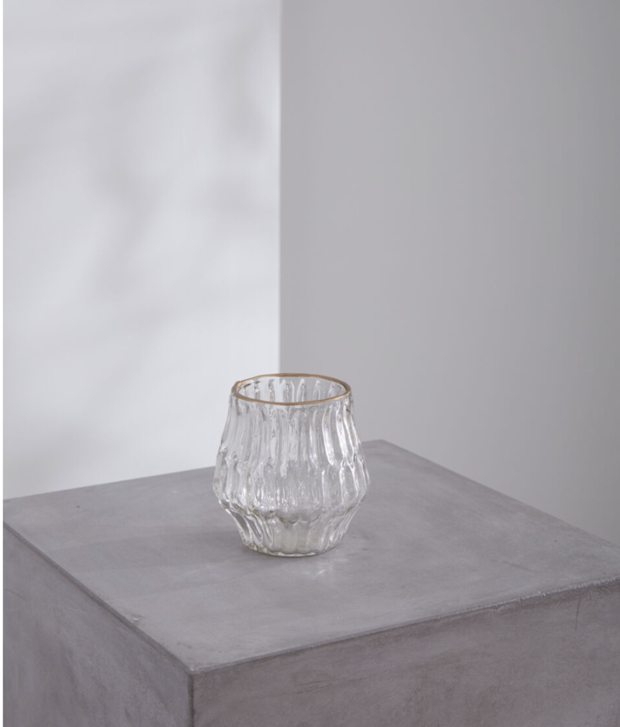 Like a beautiful find from an antique shop, the gold-rimmed, textured glass Katherine Votive offers an elegant lift & gentle ambience to centerpieces.