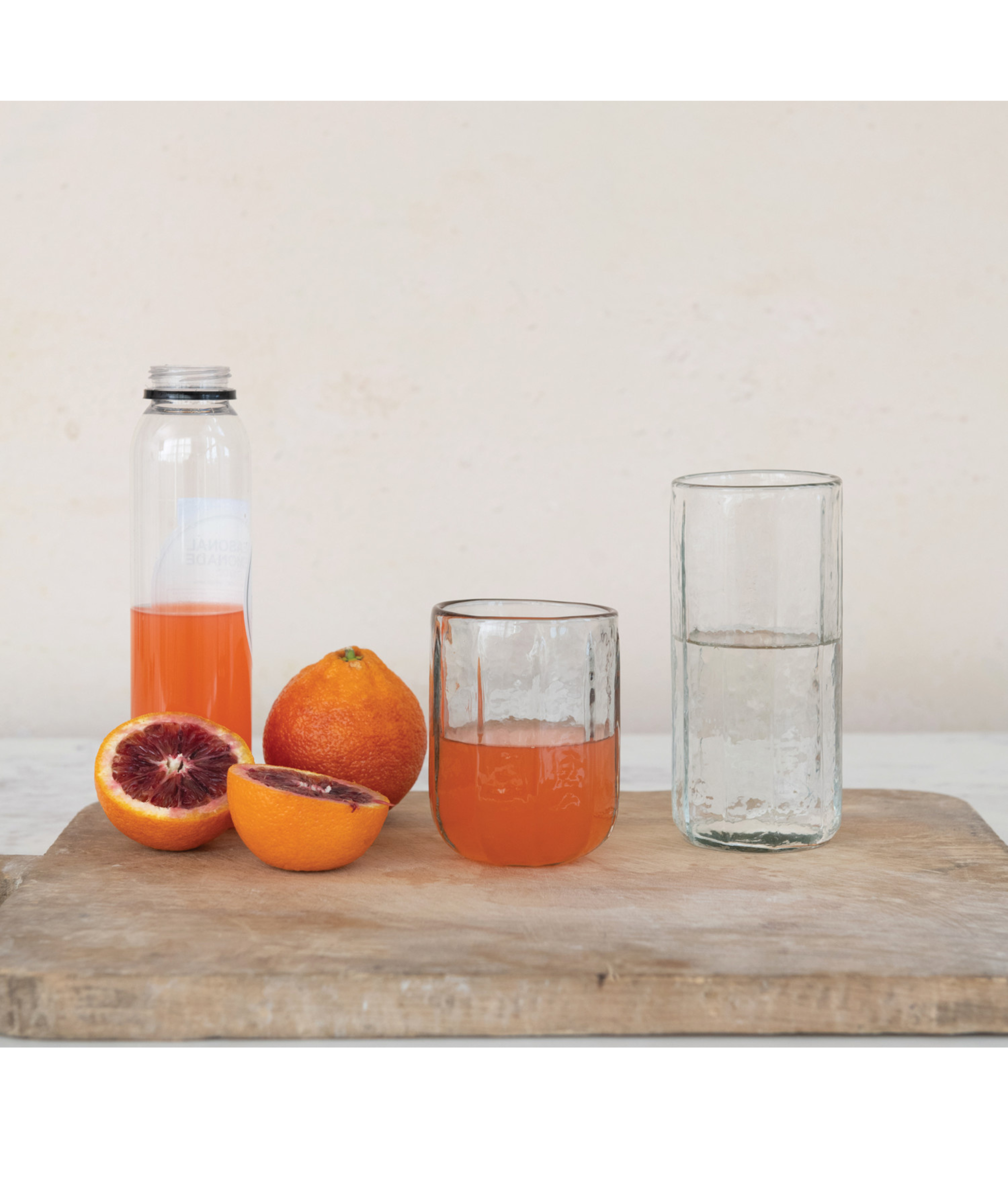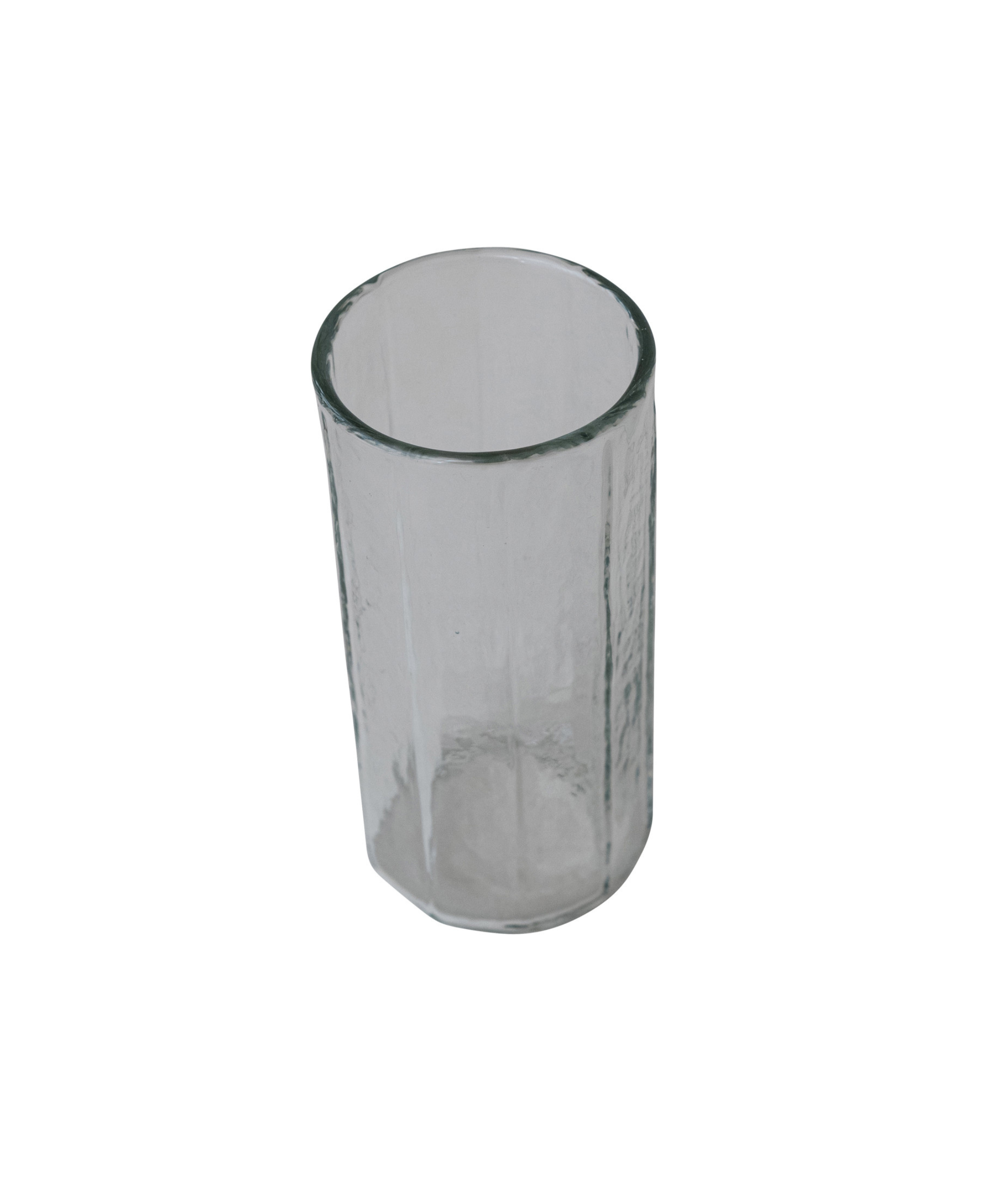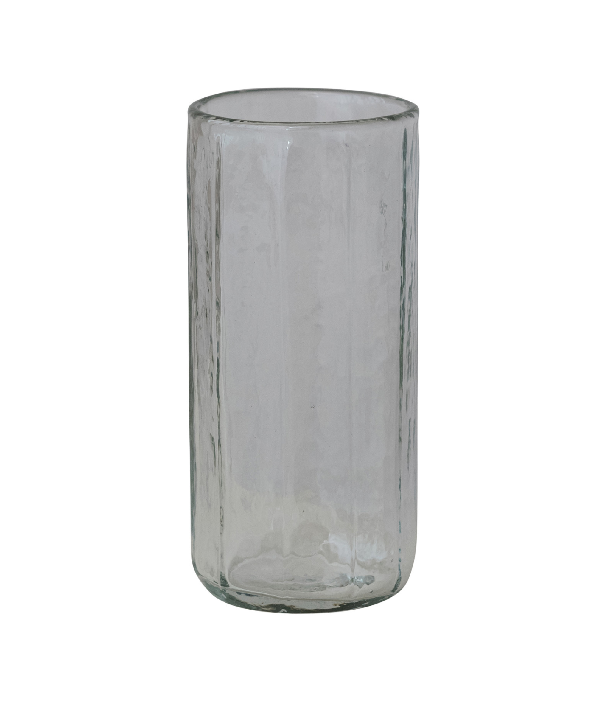 This sophisticated hand-blown round drinking glass offers a blend of artisanal charm and modern minimalism.