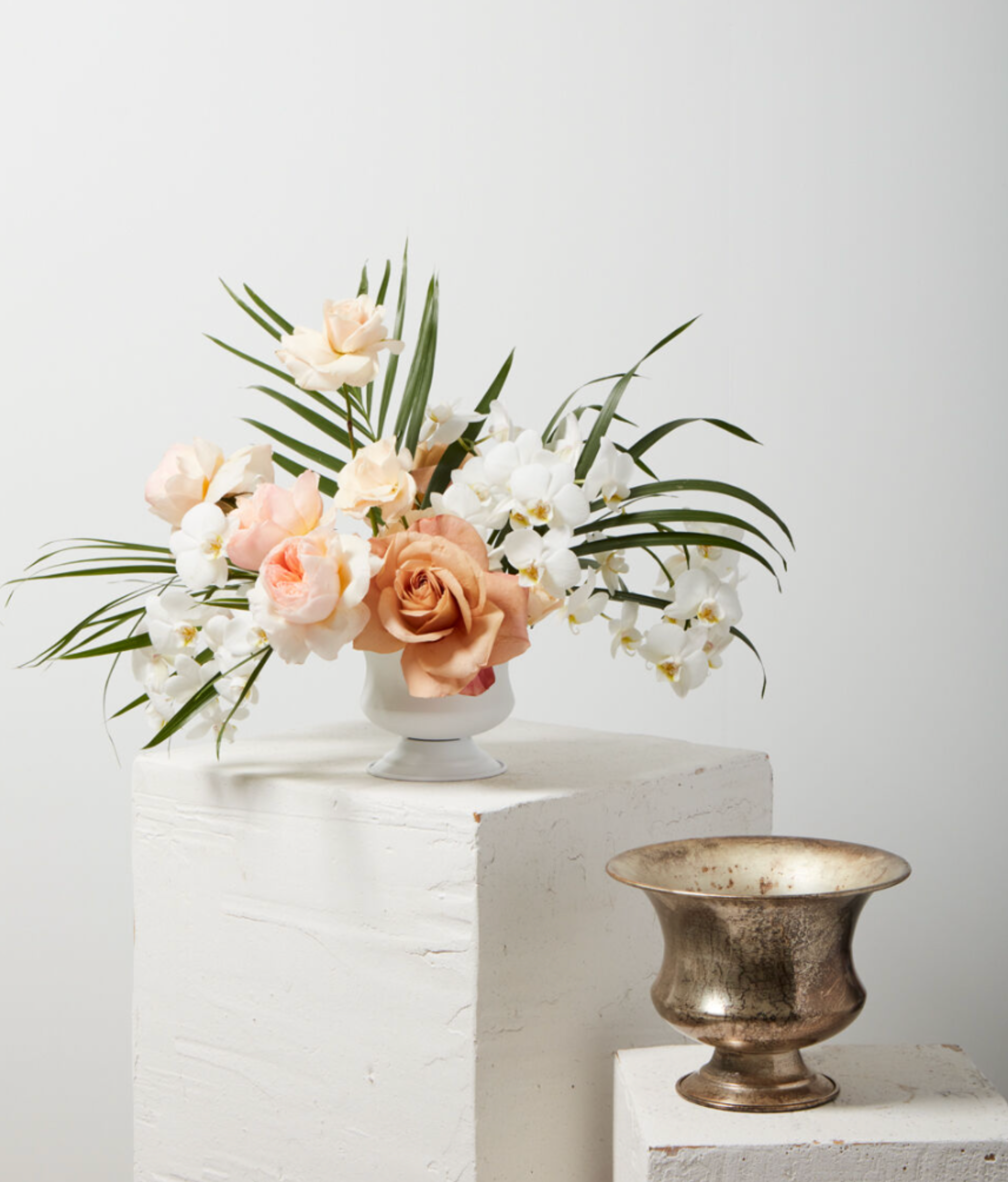 With a talent for both blending in & standing out, the lightweight metal Sidney Urn is the go-to for floral & event designers with its clean matte finish, classic shape & ability to brighten any tablescape while creating dimension.
