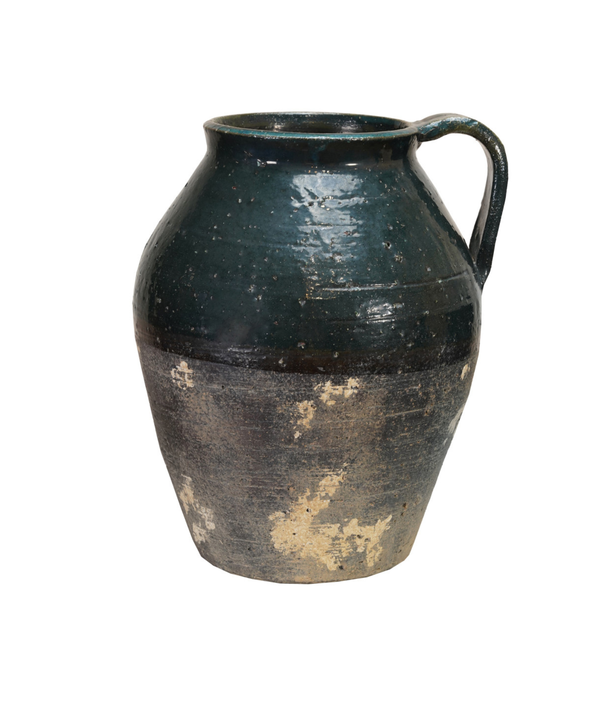 This artisanal terracotta jug vase offers a sophisticated blend of rustic character and modern luxury, making it a perfect statement piece for an upscale home. Crafted from durable, high-quality clay, this vessel features a distinctive dual-finish design that celebrates organic imperfections.