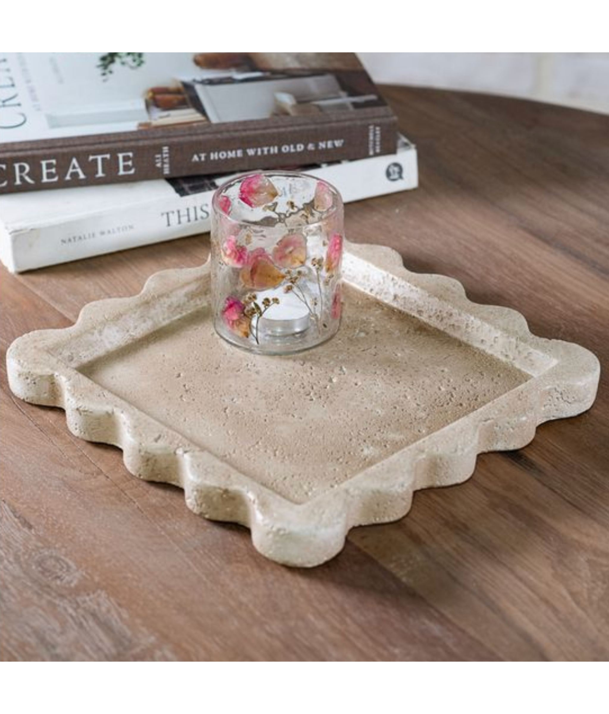 Elevate your curated home collection with this exquisite tray, a statement piece that merges organic texture with refined design. Each tray showcases a unique, inherent grain pattern and a luxurious, porous finish.