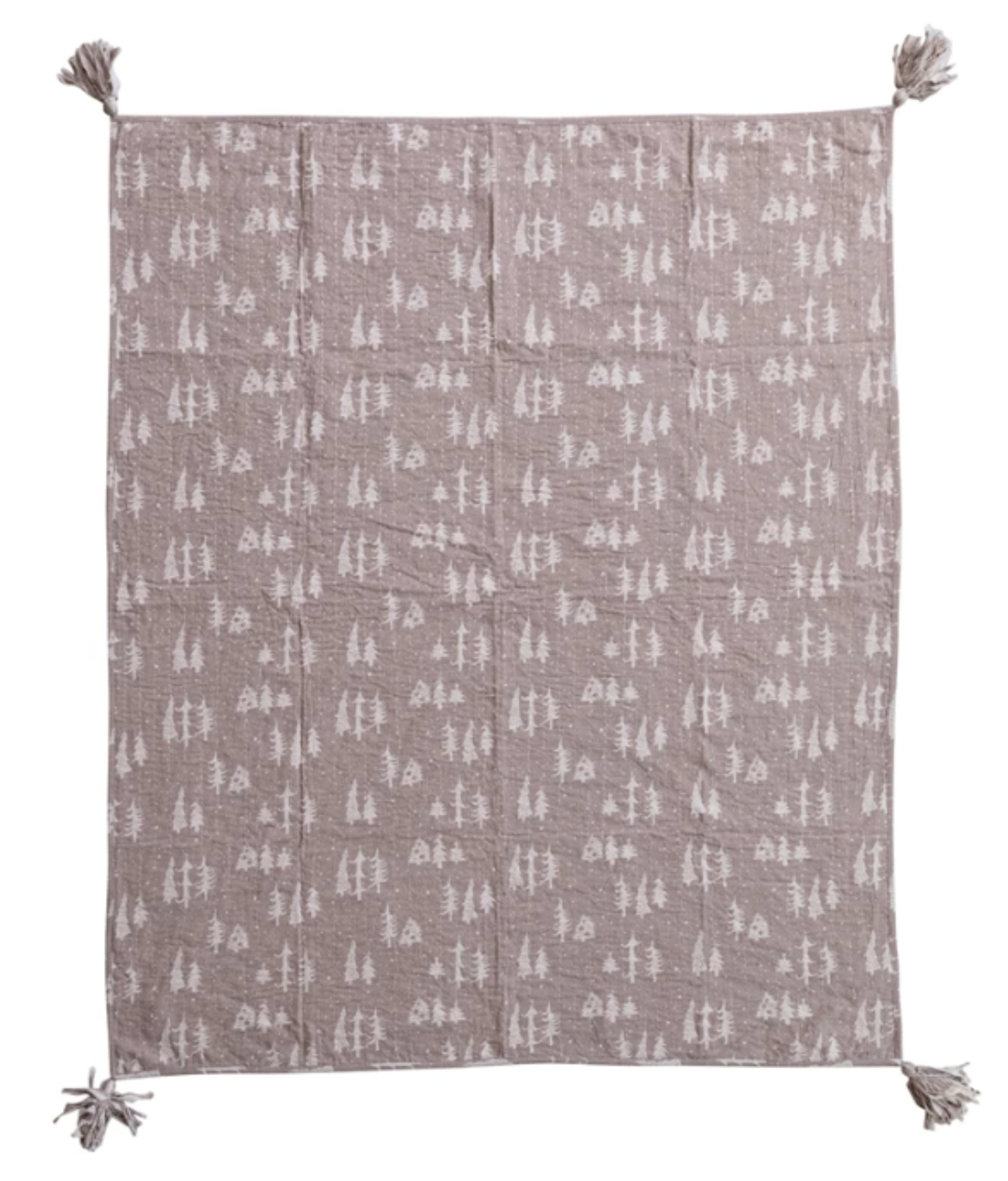 Crafted for both comfort and aesthetic appeal, this throw blanket brings a touch of understated elegance to any living space. Made from a soft, natural cotton, and hand embroidered in India with Kantha Stitching it features a sophisticated tone-on-tone pattern of stylized trees, offering a serene and simplified nod to nature. The neutral color palette provides a versatile foundation that complements a wide range of decor styles, from modern minimalist to rustic farmhouse. The blanket is finished with textured tassels at each corner, adding a delicate detail and a touch of bohemian charm to its overall design. This piece is perfect for draping over a sofa, chair, or bed, providing a cozy layer of texture and warmth for the winter season.