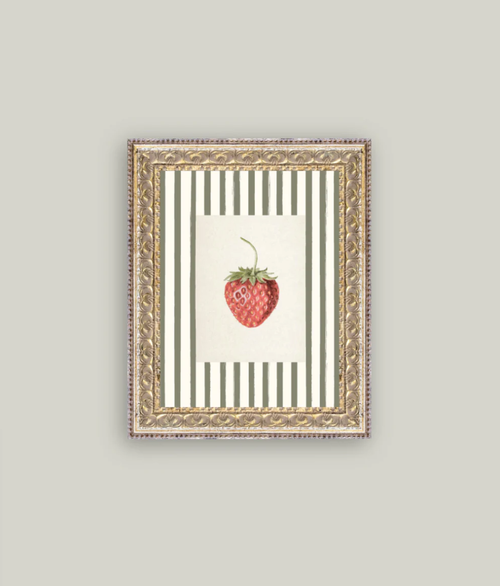Strawberries on Stripes Framed Artwork