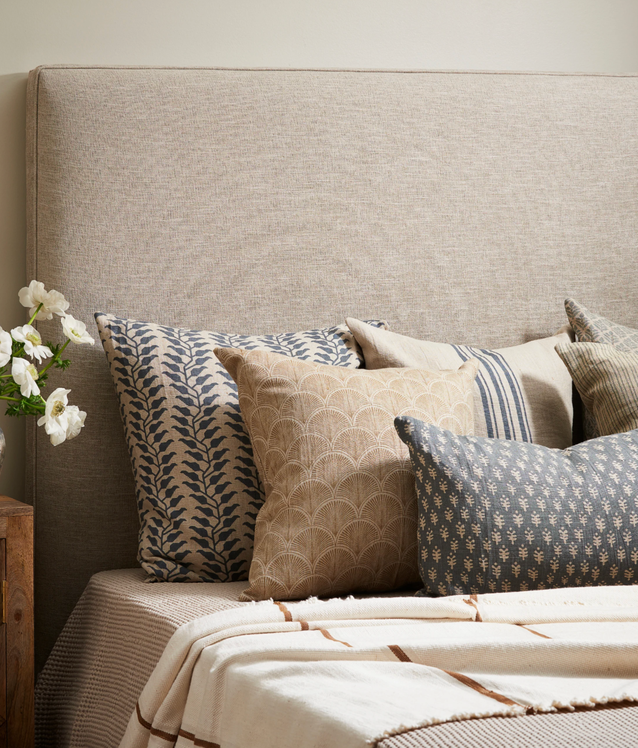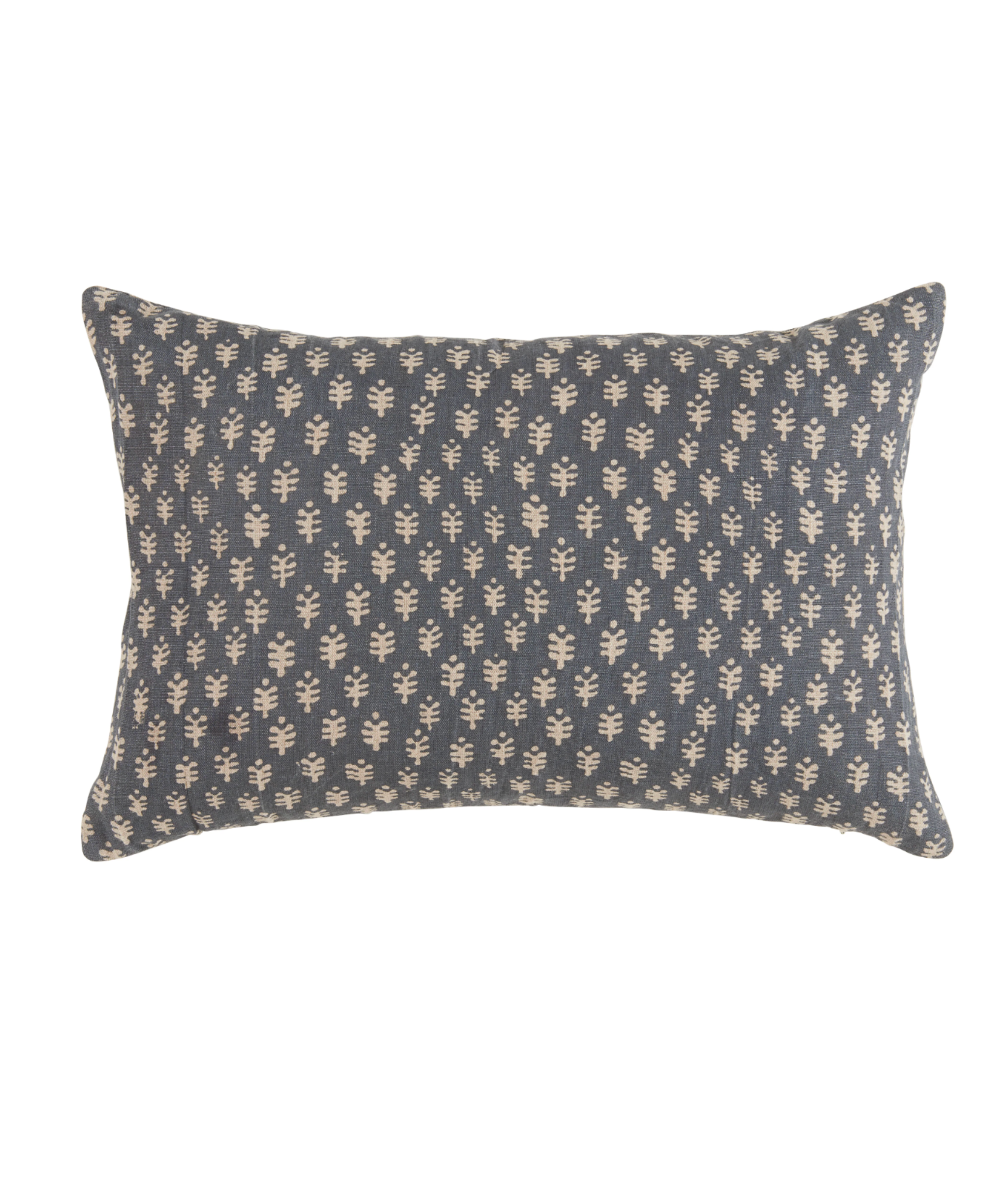 The Astra Pillow is a decorative throw pillow that features a classic floral print on both front and back. Crafted from 100% natural linen, a muted gray-blue background and dainty motif provide a soft, nature-inspired aesthetic. Each pillowcase is handprinted by skilled artisans in India using a traditional wood block technique—designs are carved into individual blocks and hand-pressed to create a layered and detailed motif. Because each pillow is hand printed, expect natural variations in color and motif placement.