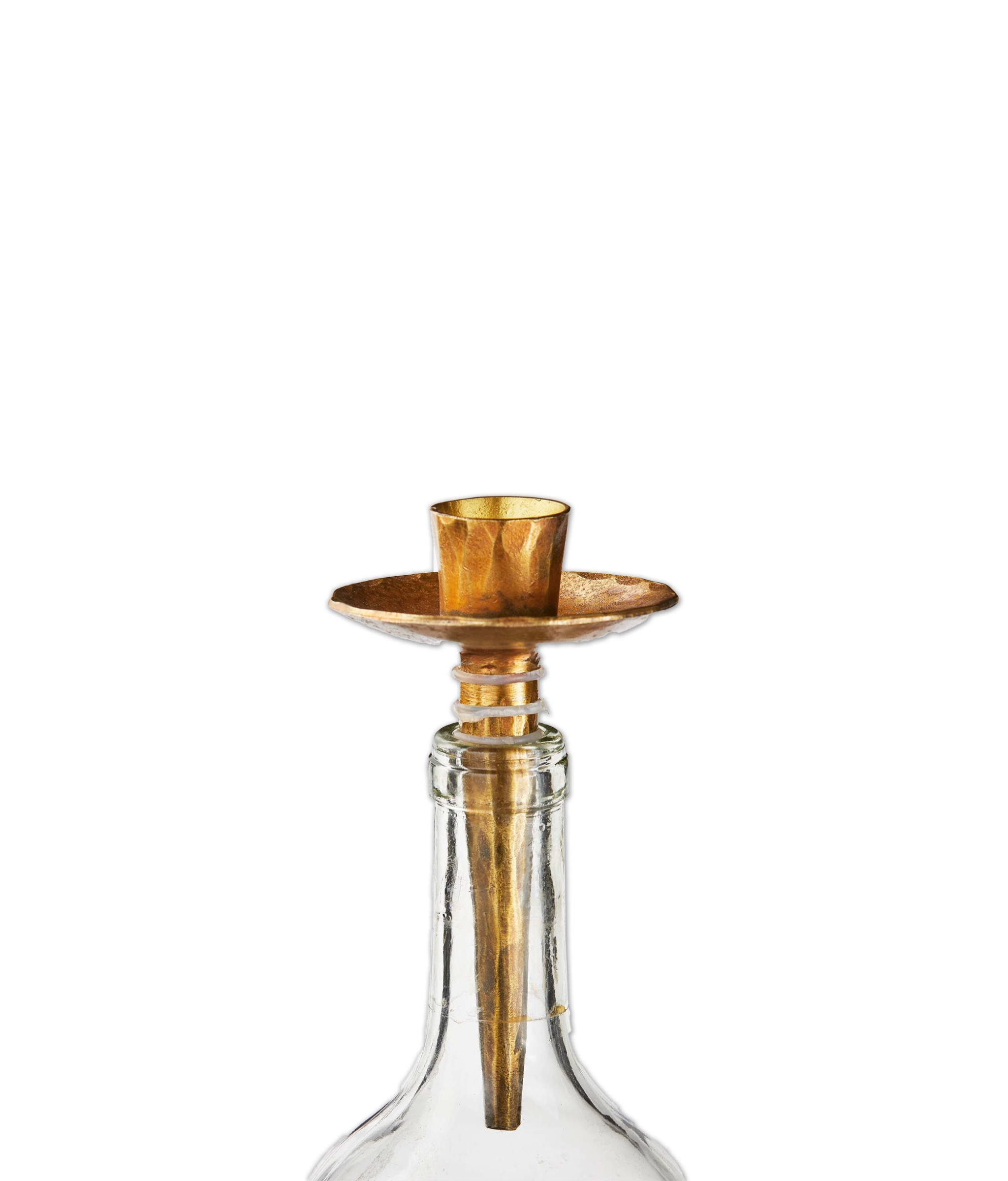 Elevate your taper candles with the hammered bottle taper holder! hand-forged by skilled artisans, this unique holder features a hammered bottle design and a rubber base for stability. available in black iron or antique brass finishes.