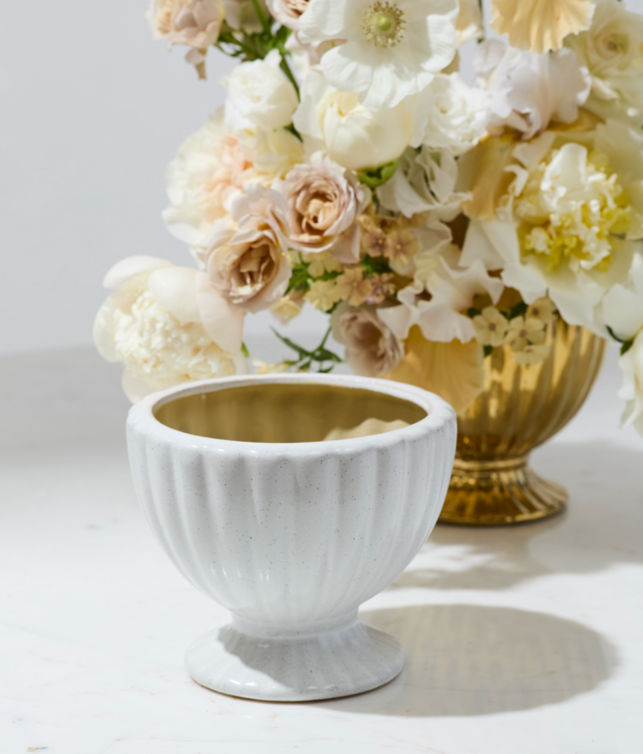 The Coronation Compote captures timeless elegance with scalloped details in ceramic, finished with an off white glaze.
