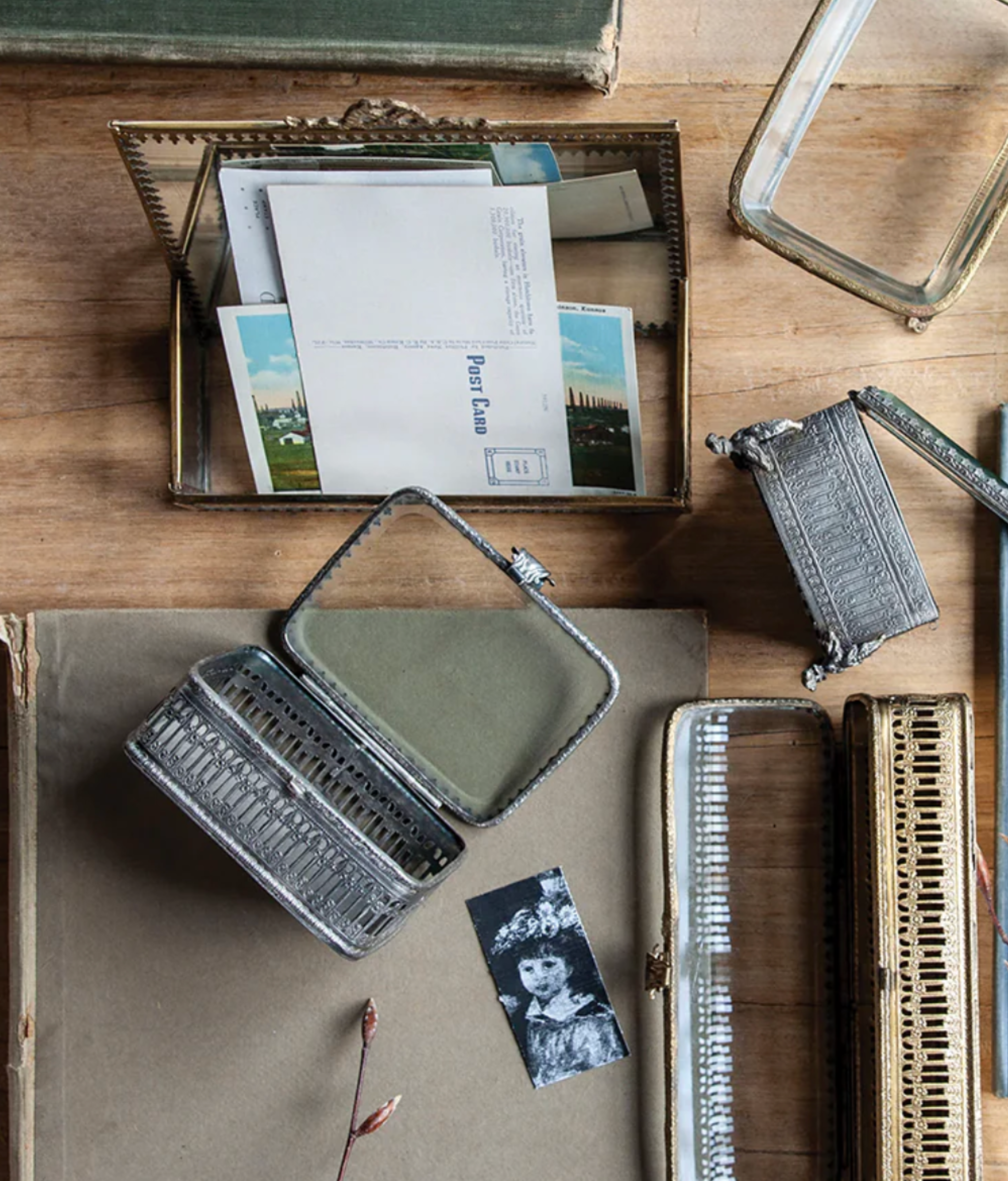 Add a dash of vintage style to your desk, dresser or vanity with any item from our assortment of Victorian curiosities. Inspired by original items harkening back to 19th century England, our expert craftsmen stay true to the look and feel of the collection’s vintage predecessors. Embellished brushed nickel and elegant glass construction.