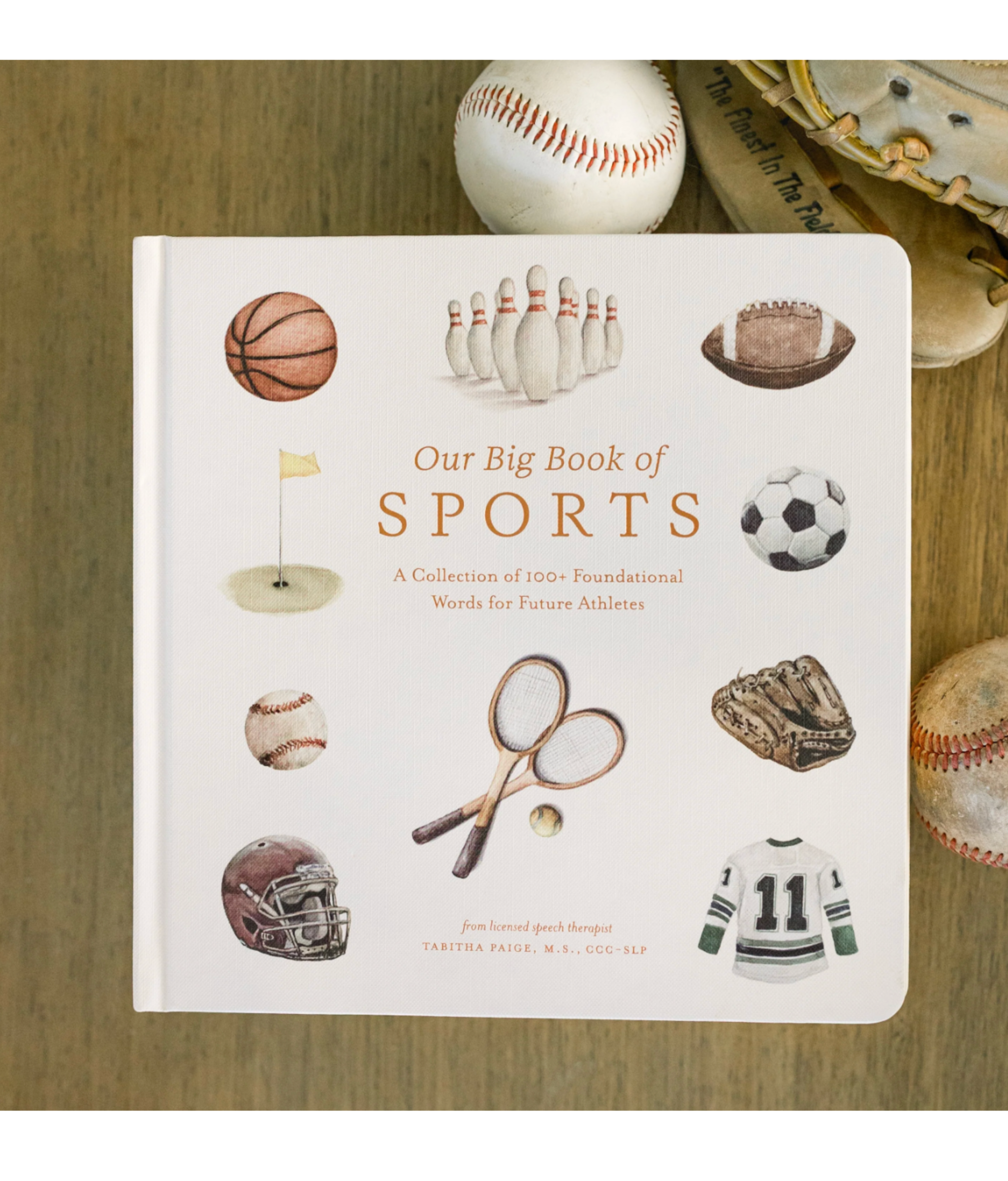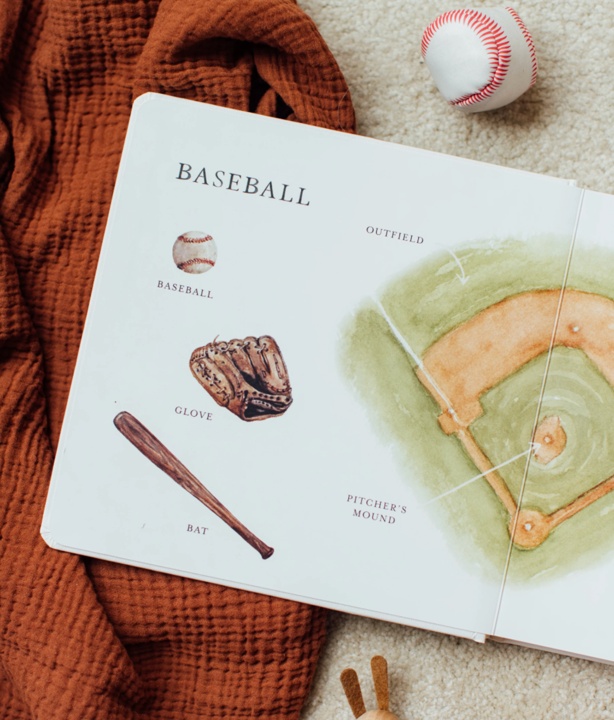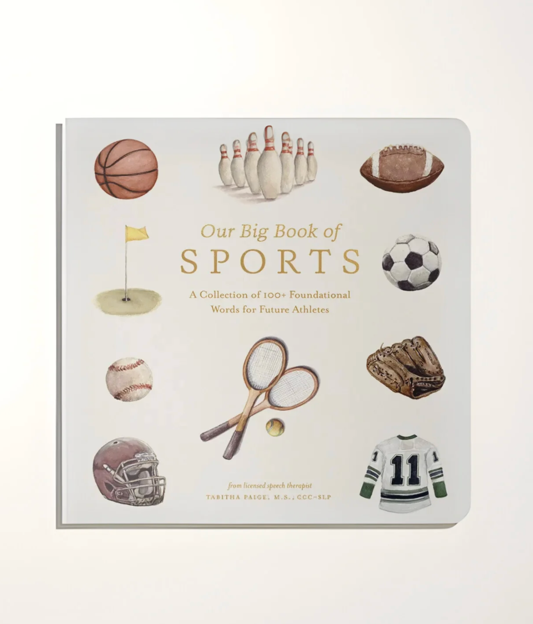 Designed by a professional watercolor artist and licensed speech therapist, Our Big Book of Sports includes charming watercolor illustrations and foundational words that will help you build your child's vocabulary. The durable materials and small book size also make them perfect for your baby's little hands.
